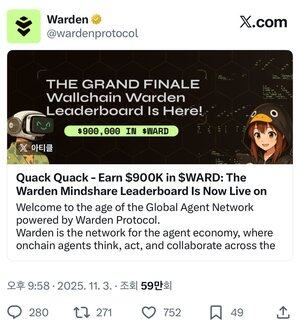 @wardenprotocol 은 AI agent HUB를 꿈꾸고 있으며 AI관련된 프로젝트들과 가장 적극적으로 파트너십 확장을 하고 있는 프로젝트긴 합니다.