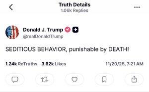 Prezident Spojených států amerických právě vyzval k smrti demokratických zákonodárců. Ten muž je nemocný v hlavě.