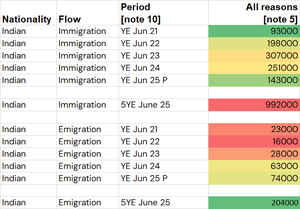 NEU: Vorläufige ONS-Zahlen zeigen, dass fast eine Million indische Staatsangehörige zwischen Juni 2020 und Juni 2025 in das Vereinigte Königreich migriert sind.