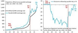 Der parallele Wechselkurs Argentiniens entstand, nachdem Macri die Vorwahlen im August '19 verloren hatte. Er spiegelt die Erwartungen an eine Abwertung wider, d.h. die Menschen sind bereit, einen schlechteren Wechselkurs zu akzeptieren, um Dollar zu erhalten. Die Tatsache, dass der parallele Rabatt trotz der Zusicherungen der USA größer wird, ist bemerkenswert und besorgniserregend.