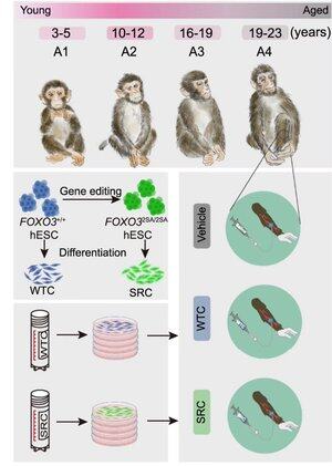 Investigadores inyectaron a monos envejecidos con células madre diseñadas con una única edición genética (SRCs)
