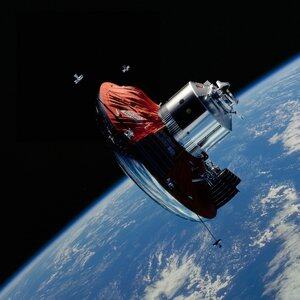 Arte conceptual para programas espaciales inexistentes. NoAI, usando solo FOSS (Blender y GIMP.)