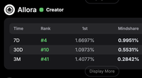 Comparé à il y a seulement deux semaines, où le rang 7D d'Alora @AlloraNetwork n'était même pas visible, il a vraiment beaucoup progressé !!