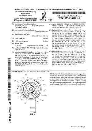 🚨 BREAKING: Paten "BI-DIRECTIONAL MECHANICAL GEROTOR PUMP" (WO2025198911A1) Tesla diterbitkan hari ini. 👀