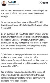 🚨 NUOVO: Il fondatore di Plasma @pauliepunt afferma che nessun membro del team ha venduto $XPL, con tutti i token degli investitori e del team bloccati per 3 anni (1 anno di cliff). Ha aggiunto che circa 3 dei ~50 membri del team provengono da Blur o Blast, e ha confermato che Wintermute non è stato coinvolto come market maker.