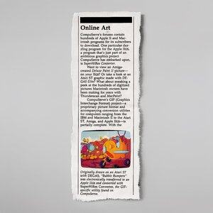 1987: "Il progetto GIF (Graphics Interchange Format) di CompuServe—un formato di immagine proprietario e utilità di conversione per computer che vanno dall'IBM e Macintosh II all'Atari ST, Amiga e Apple IIgs—è parzialmente completato."