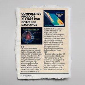 1987: "…un nuovo formato di file introdotto oggi da CompuServe Inc. Il Graphics Interchange Format, o GIF (pronunciato 'jif'), consente lo scambio di immagini grafiche ad alta risoluzione tra microcomputer senza considerare la compatibilità hardware."