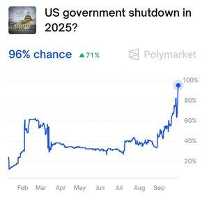 速報: Polymarket によると、米国政府が 2025 年に閉鎖される可能性は 96% です。