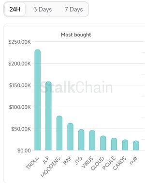 🚨 Stalkchain によると、$TROLL (@trololol_io) は過去 24 時間にスマートマネーによって最も購入されたミームコインです。