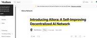 ▪️Allora は、ML モデルの自己改善型ネットワークを通じて、よりスマートで安全な AI でアプリケーションを強化するように設計されています (Medium Blog)