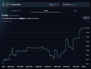 tUSDe の IY は過去 1 週間で 22% 上昇し、現在 APY は 12.45% で余裕を持って座っています。