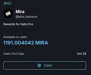 $1.600 aan $MIRA-tokens geclaimd. Laten we gaan!