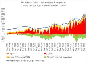 A concentração de desequilíbrios comerciais (de bens) no Leste Asiático é realmente notável - mais ou menos todo o superávit global é agora encontrado em algumas economias asiáticas.
