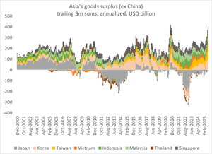 Mas não é apenas a China - o boom do data center usa muitos chips. Isso empurrou o superávit da Coréia e de Taiwan para cima (além disso, quase todas as moedas asiáticas são muito fracas ...)