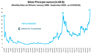 A prata fechou o mês de setembro a $47 a onça, o seu fechamento mensal mais alto da história. Isso supera o recorde anterior de abril de 2011.