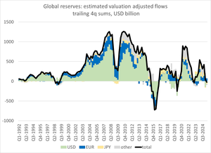 Não houve essencialmente fluxo de bancos centrais estrangeiros/gestores de reservas para dólares no último ano e o crescimento das reservas globais também estagnou ...