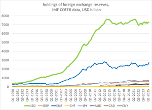 ps Estou feliz por compartilhar este trabalho com outros interessados no tema; quero encorajar as pessoas a irem além da análise da participação do dólar nas reservas num momento em que as reservas e as posses em dólares estão estagnadas!