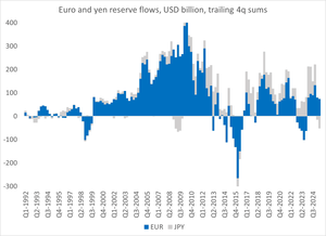 Os bancos centrais aumentaram um pouco as suas reservas em euros em termos de dólares (ou melhor, não venderam euros apenas porque o euro subiu em relação ao dólar no segundo trimestre). Mas a história maior é que as reservas em dólares são basicamente constantes ...