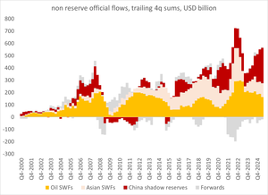 Eu ampliei esta análise de algumas maneiras que considero interessantes (este tweet antecipa um blog que está por vir) -- notavelmente ao rastrear os fluxos dos fundos soberanos de riqueza, bem como os fluxos dos bancos de políticas chineses (estes aumentaram recentemente)