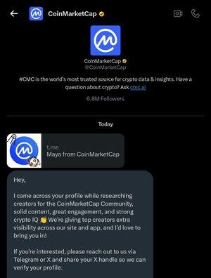 Então, @CoinMarketCap entrou em contato para eu me juntar à sua comunidade de criadores.