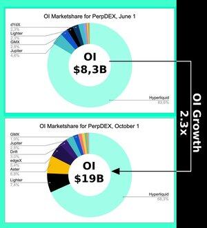Це свідчить про те, що сектор PerpDEX в даний час є «блакитним океаном», а отже, швидше за все, з'являться нові, маловідомі гравці, які стрімко захоплять ринок, як це відбувається з Lighter і Aster.