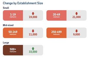 Зайнятість у малих та середніх компаніях скоротилася. Великі компанії продовжували зростати.
