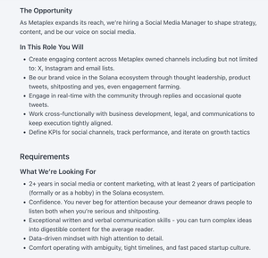 Окрім глибокого занурення в екосистему Solana, ми шукаємо когось, хто неймовірно впевнено грає на X.