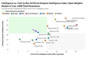 Сьогодні IBM випустила чотири нові моделі: Granite 4.0 H Small (загальні/активні параметри 32B/9B), Granite 4.0 H Tiny (7B/1B), Granite 4.0 H Micro (3B/3B) та Granite 4.0 Micro (3B/3B). Ми оцінили Granite 4.0 Small (у режимі без міркувань) та Granite 4.0 Micro за допомогою Artificial Analysis Intelligence Index. Моделі Granite 4.0 поєднують в собі невелику кількість стандартних шарів уваги в стилі трансформера з більшістю шарів Mamba, що стверджується, зменшує вимоги до пам'яті без шкоди для продуктивності