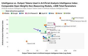 IBM випустила Granite 4.0 - нове сімейство моделей відкритої ваги розміром від 3B до 32B. Штучний аналіз був наданий перед релізом, і наш порівняльний аналіз показує, що Granite 4.0 H Small (32B/9B загальні/активні параметри) отримав індекс інтелекту 23, з особливою перевагою в ефективності токенів