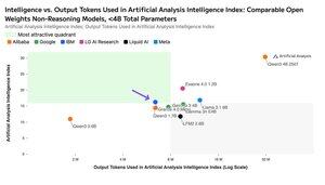 У категорії моделей без міркувань з відкритими вагами, менших за загальні параметри 40B, Granite 4.0 H Small знаходиться на межі компромісу між інтелектом і вихідними токенами, що використовуються в індексі інтелекту штучного аналізу