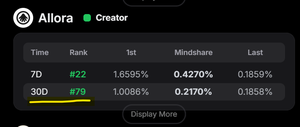 Xếp hạng của Alora @AlloraNetwork đã tăng gần 20 bậc!