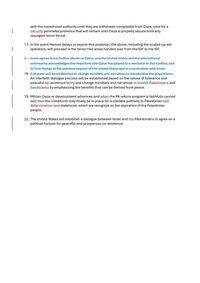 ➤ Việc rút quân gắn liền với việc giải giáp Hamas, với các điều khoản được mở rộng từ vũ khí tấn công đến tất cả các loại vũ khí "quân sự/khủng bố", thêm vào "bị phá hủy và không được xây dựng lại" điều này thực sự giữ IDF bên trong Gaza vĩnh viễn