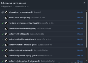 Tại sao 1 phút? Đó là thời gian tối thiểu được phép bởi GitHub Actions. Trong khoảng thời gian đó, openpilot thực hiện một bài kiểm tra lái xe toàn diện, chạy trên phần cứng thực và một loạt các kiểm tra khác.