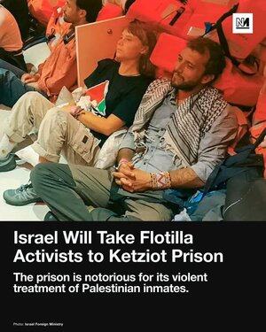 全球Sumud船队的成员在周三晚上被以色列军方在国际水域绑架,预计将被转移到以色列最臭名昭著的酷刑监狱之一。Ketziot监狱位于内盖夫沙漠,一直以来都是对巴勒斯坦囚犯进行虐待的场所。 2021年,出现了数十名巴勒斯坦人被铐住并被扔到地上的视频,以色列警卫轮流踢打和殴打他们。没有任何官员被指控。 2023年,一名38岁的巴勒斯坦囚犯被一群戴着头盔以掩盖面孔的警卫打死。Thaer Abu Asab据说遭受了如此猛烈的攻击,以至于“他的一块颅骨掉到了地上,血液充满了房间的地板,”根据他的兄弟的说法。十九名警官被调查,但没有人被起诉。五名警官仅被转移到另一个单位。 就在去年,以色列人权组织B’Tselem发布了一份报告,包含了自10月7日以来被带到Ketziot的12名巴勒斯坦人的证词。他们描述了用警棍殴打、酷刑、羞辱和性暴力,以及缺乏卫生和食物,警卫未能满足他们的基本需求。 由于赎罪日假期,以色列的船队囚犯预计将在监狱中被关押几天,这意味着以色列将在周一或周二才开始驱逐。Clare Azzougrah的72岁RAF退伍军人父亲Malcom Ducker被拘留,她被告知所有人都被转移到监狱,因为“他们人数太多,需要把他们放在一起。”她补充道:“但我一秒钟都不相信他们。” Novara Media特别关心其记者@Kieran_Andrieu的安全,他是一名巴勒斯坦裔的英国记者,六个兄弟姐妹生活在被占领土。为了自身安全,Andrieu本打算签署一份自愿驱逐令,允许他立即离开该国。现在,考虑到他的血统,Novara Media担心如果被转移到监狱,他的健康和生命可能面临严重危险。 英国外交部表示“非常关切”。