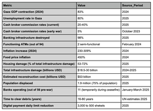 目前正在為@stableinstitute撰寫一篇新文章,探討當前人道危機中最被忽視但卻至關重要的方面之一:加沙金融系統的完全崩潰及其對平民生存的毀滅性影響。 在現代衝突中,控制金融系統的破壞性可以與控制食物或藥品相提並論。這場危機顯示了人類在創造非正式替代方案方面的適應能力,以及這些系統對230萬人服務的不足。