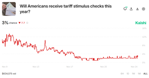 特朗普總統承諾向美國人發放2000美元的關稅刺激支票。 問題是美國人不相信特朗普會兌現承諾。 在Kalshi預測市場中,參與者預期今年發放刺激支票的機會僅為3%。