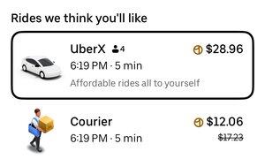 Uber 和 Uber Courier(用車送包裹到城裡)之間的價格差異很有趣——人們對於不必處理人類乘客的情況給予了相當高的溢價,哈哈。